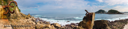 © Noradoa, Obraz premium Panoramiczny widok na rzeźbę „Peine del Viento” w San Sebastian w Hiszpanii