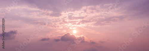 © yotrakbutda, Obraz premium Panoramy nieba zmierzchu tło z kolorami różany kwarc i spokój