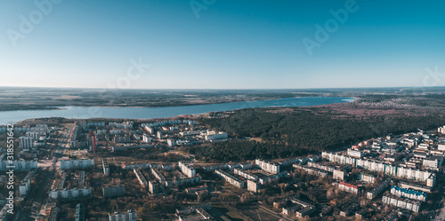 © Mikalai, Obraz premium panorma landscape of the city and reservoir, clear sunny day