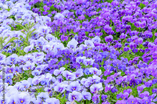 Naklejka premium パンジーとビオラ 火の山公園トルコチューリップ園 山口県下関市 Pansy and Viola flower Hinoyama Park Yamaguchi Shimonoseki city