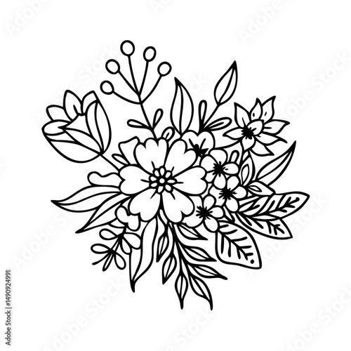 © Backdrop Bliss, Fototapeta premium Pansy Floral Sketch Tattoo Design