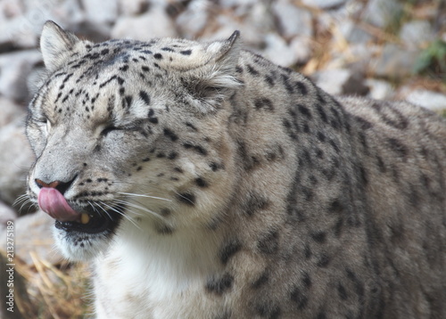 © andreaskoch02, Fototapeta premium Pantera śnieżna oblizuje nos