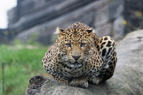 © Jerome, Fototapeta premium Panthère de Java allongée fixe l'objectif
