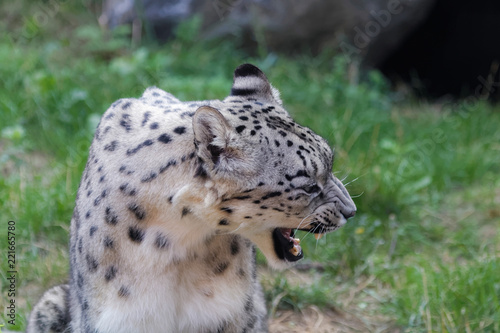 © Jerome, Naklejka premium Panthère des neiges ouvrant la gueule