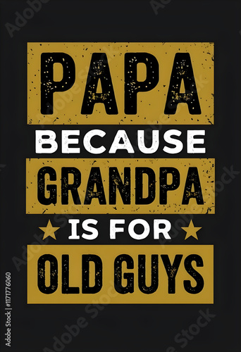 © TShirt Empire, Fototapeta premium Papa Because Grandpa Is For Old Guys: A Cool Vintage-Style Father's Day or Grandpa's Day Gift T-Shirt Design with Distressed Gold Text on a Black Background. Perfect for Proud Papas!