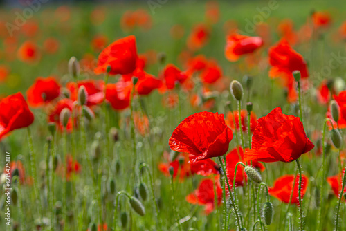 Obraz premium Papaver rhoeas or common poppy, red poppy is an annual herbaceous flowering...