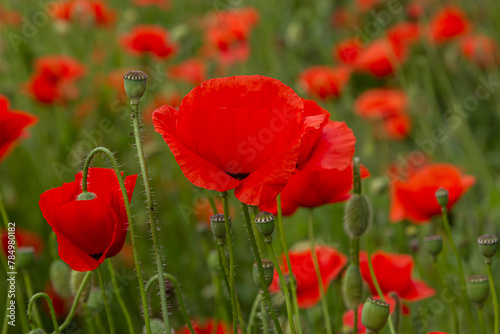 Naklejka premium Papaver rhoeas or common poppy, red poppy is an annual herbaceous flowering...