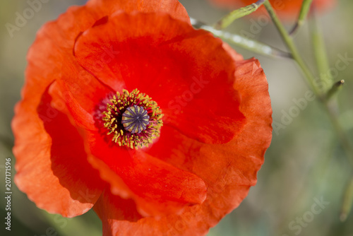 © Patrizio, Fototapeta premium Papavero rosso macro con sfondo verde