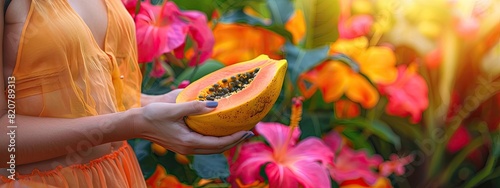 © Яна Ерік Татевосян, Fototapeta premium papaya harvest in the hands of a woman. Selective focus.