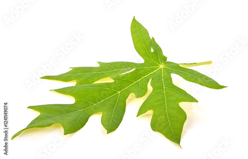 © Montree, Obraz premium Papaya leaf on white background isolate image.