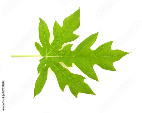 © Montree, Obraz premium Papaya leaves on white isolate image. top view