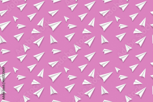 © Igor, Fototapeta premium Paper Airplane pattern on color background