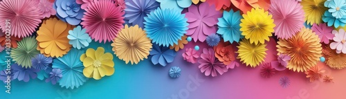 © taweesak, Naklejka premium Paper art fireworks, vibrant colors in New Year night sky, 3D illustration