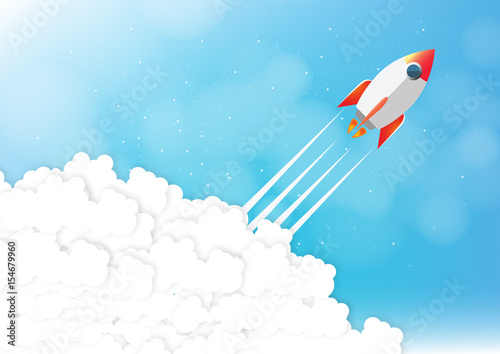 © royyimzy, Naklejka premium Paper art of Startup project concept. Business flat design vector illustration
