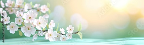 © SAJEDA, Obraz premium paper art of white and yellow flower plant with green meadow and sunset on background