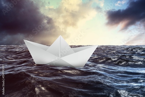 © vectorfusionart, Fototapeta premium Paper boat floating on the sea
