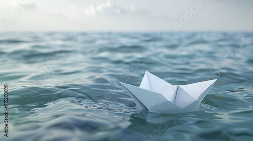 © fajar, Obraz premium Paper Boat Sailing on Calm Waters