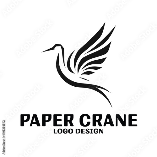 © T-Vectors, Obraz premium Paper Crane Vector Logo Design