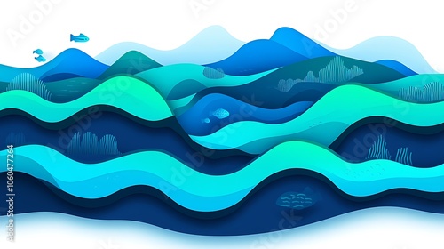 Obraz premium Paper Cut Ocean Waves Illustration Soft Pastel Background for Graphic Design...