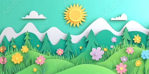 Obraz premium Paper cut-out art, depicting a beautiful natural scene.