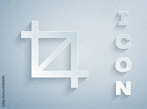 Fototapeta premium Paper cut Picture crop photo icon isolated on grey background. Paper art...