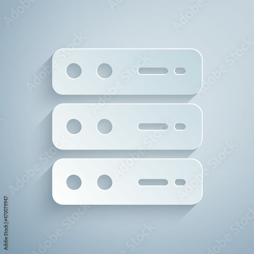 © vector_v, Fototapeta premium Paper cut Server, Data, Web Hosting icon isolated on grey background. Paper art style. Vector