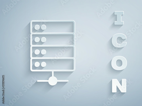 © Kostiantyn, Obraz premium Paper cut Server, Data, Web Hosting icon isolated on grey background. Paper art style. Vector