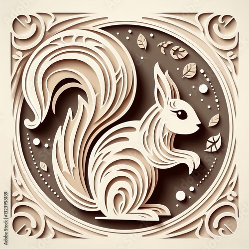 Obraz premium Paper Cut Squirrel: Stylized Illustration Paper Cut Technique