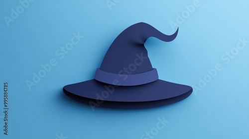 Fototapeta premium Paper cut witch hat icon on a blue background Perfect for Halloween celebrations Created in paper art style featuring a playful 2D cartoon design