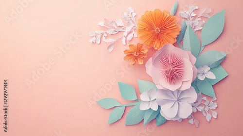 Fototapeta premium Paper Flower Arrangement on Soft Pink Background
