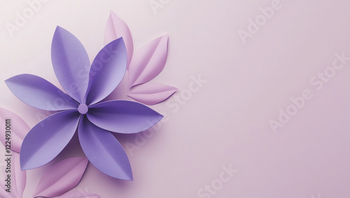 © littlepiccie, Naklejka premium paper flower arrangement with shades of purple and pink, copy space