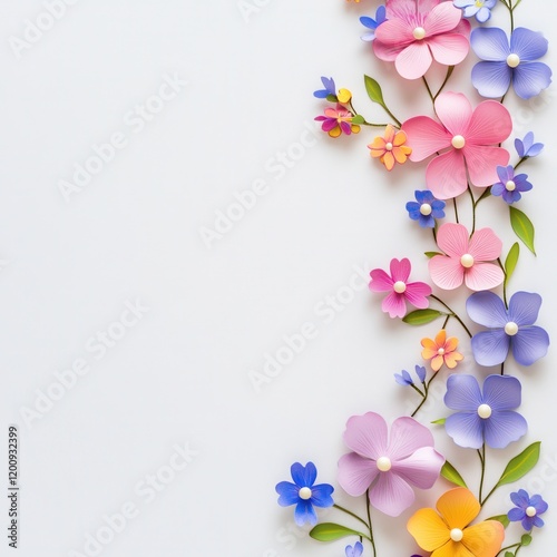 © Abdul, Naklejka premium Paper flowers border, white background, craft (2)