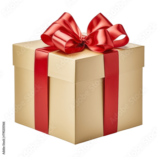 Obraz premium paper gift box with red ribbon isolated on transparent background cutout