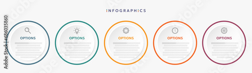 © Flookker, Fototapeta premium Paper infographic template with 5 circle options for presentation and data visualization. Business process chart.Diagram with Five steps to success.For content,flowchart, workflow.