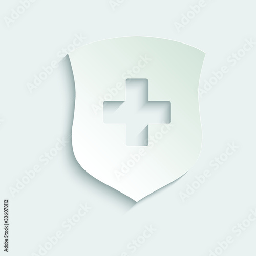 © veronchick84, Obraz premium Paper Medical shield icon. Medical protection sign