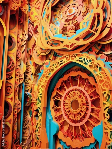 © peacehunter, Obraz premium Paper Mosque Reverence Minimalistic 3D Craft Style Illustration for Islamic Art