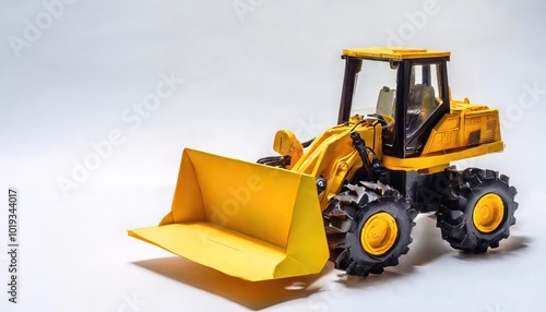 © Chase D’Animulls, Fototapeta premium paper origami concept of a bulldozer, dozer or crawler, a large, motorized machine equipped with a metal blade to the front for pushing material like soil, sand, snow, rubble, or rock. Isolated white