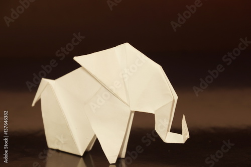 © romanklevets, Naklejka premium Paper origami elephant isolated on a colorful background
