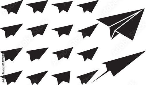 © Rizwan Ahmad, Fototapeta premium Paper Plane Silhouette - Fun Origami and Flight Icon