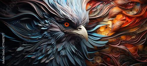 © Fikri, Obraz premium paper quilling griffin, ai generative