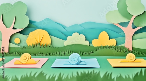 Naklejka premium Paper snails spring landscape.