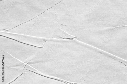 Obraz premium Paper white with wet effect texture, gray background for web design. Old cardboard cover template with kinks and crumpled elements.