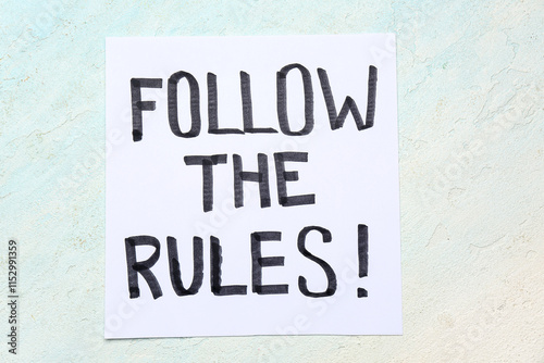 © Pixel-Shot, Fototapeta premium Paper with text KNOW THE RULES on light grunge background