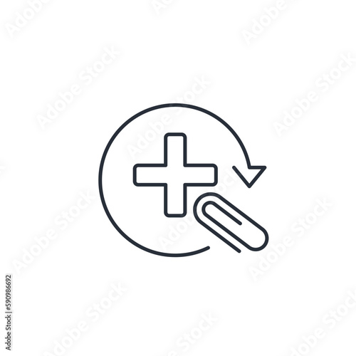 Obraz premium Paperclip and plus sign. New addition. Vector linear icon isolated on white...