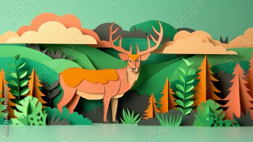 Fototapeta premium Papercraft Deer in a Forest Landscape