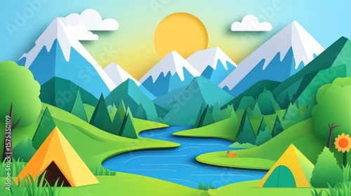 © itol, Obraz premium Papercraft mountain landscape