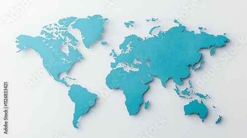 Fototapeta premium Papercraft World Map with Cut-Out Continents on White Background