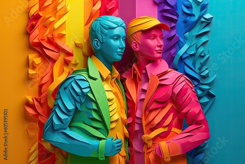 © Ultra Png, Fototapeta premium Papercut illustration of a LGBTQ couple for Pride day background . Generative Ai illustration