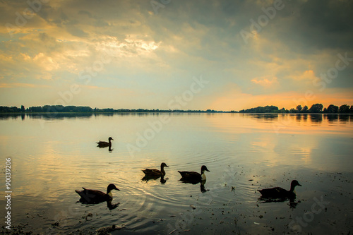© Franco Bissoni, Naklejka premium papere sul lago al tramonto