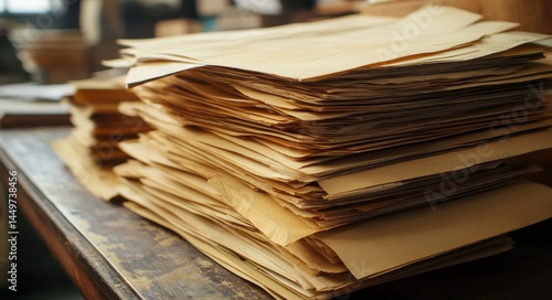 Obraz premium Papers On A Table. Stacked Documents on Office Desk for Organized Document...